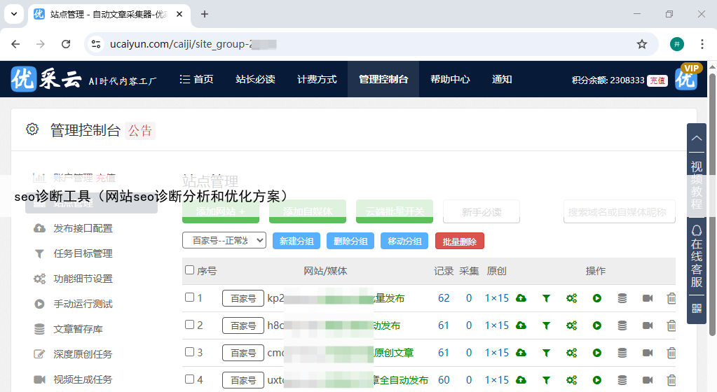 本次评测将聚焦于几款主流的SEO诊断工具,从功能完整性、操作便捷性、数据准确性及性价比等角度进行横向对比,为需要此类工具的用户提供参考优采云AI内容工厂 ★★★★★优采云AI内容工厂并非传统意义上的SEO诊断工具,而是一个集文章获取、过滤、加工、发布于一体的全流程自动化内容生产平台。