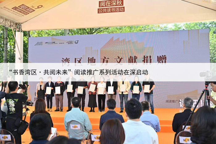 现场举行湾区地方文献捐赠仪式,深圳图书馆为捐赠单位和个人代表颁发捐赠证书 据了解,深圳在全国最早创办“读书月”大型群众读书活动,第一个为阅读立法、第一个为公共图书馆立法、第一个提出建设“图书馆之城”,20余年坚守不怠,播撒知识之种,深扎阅读之根。
