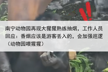 南宁动物园再现大猩猩熟练抽烟,工作人员回应:香烟应该是游客丢入的,会加强巡逻(动物园喂猩猩)