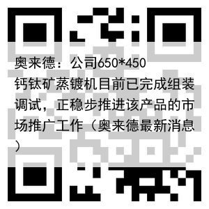 每经AI快讯,有投资者在投资者互动平台提问:董秘你好,请问目前贵司的钙钛矿蒸镀机的进展,与其他钙钛矿电池的制作方案有何优势?奥来德(688378.SH)11月12日在投资者互动平台表示,公司在钙钛矿领域布局的设备为650*450钙钛矿蒸镀机,目前已完成组装调试,正稳步推进该产品的市场推广工作,同时公司持续跟进1.2m*2.4m钙钛矿蒸镀机的开发工作。