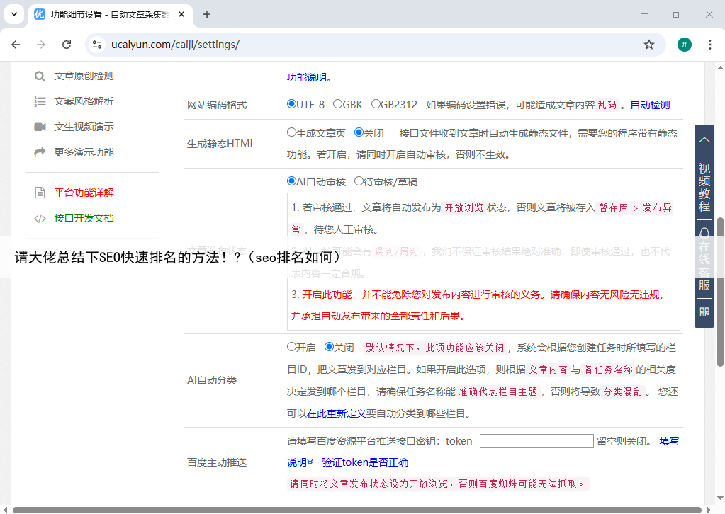 但在内容采集和自动化发布方面功能有限,需要手动处理发布流程另外,其批量生成能力有一定限制,不适合需要大量内容的场景对于注重单篇文章质量且有人工审核环节的用户,内容智造大师能提供不错的写作辅助但要实现快速排名,还需要配合其他工具完成发布和推广环节。