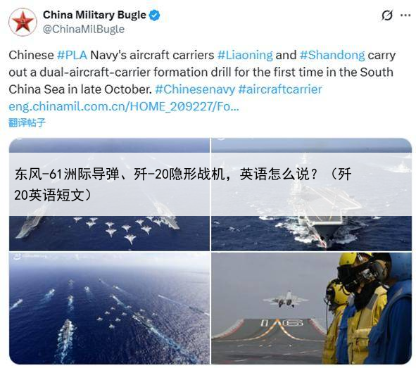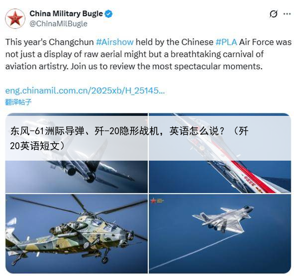 “中国军号” (@ChinaMilBugle)收获海内外网友评论对很多军迷来说“中国军号”(@ChinaMilBugle)发布的内容不仅“好看”,还“好学”For military enthusiasts, the account offers more than visuals — it’s also a bilingual learning hub.