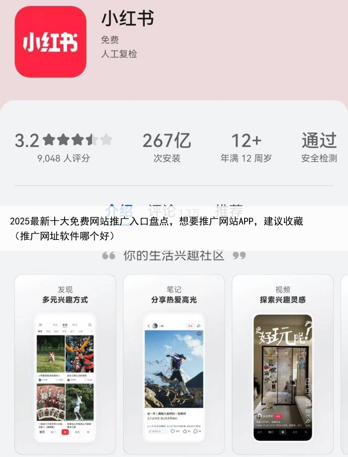 十大免费网站推广入口七:小红书小红书作为现下最热门的种草平台,坐拥庞大的用户体量可以在小红书免费发布一些自己网站APP相关的科普、种草帖子,尽量符合小红书群体的阅读喜好,可以获得一波很大的曝光量,进而实现APP用户量的增长。