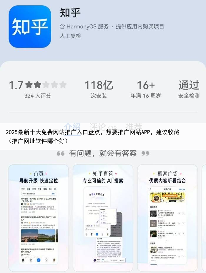 十大免费网站推广入口八:知乎知乎作为一个高质量的问答社区,里面也汇聚了不少专业人员,可以在里面和专业推广人员、团队对接交流或者也可以在知乎上发布一些APP推广的文章、视频或者回答,来提高APP的知名度,获取更多精准用户。