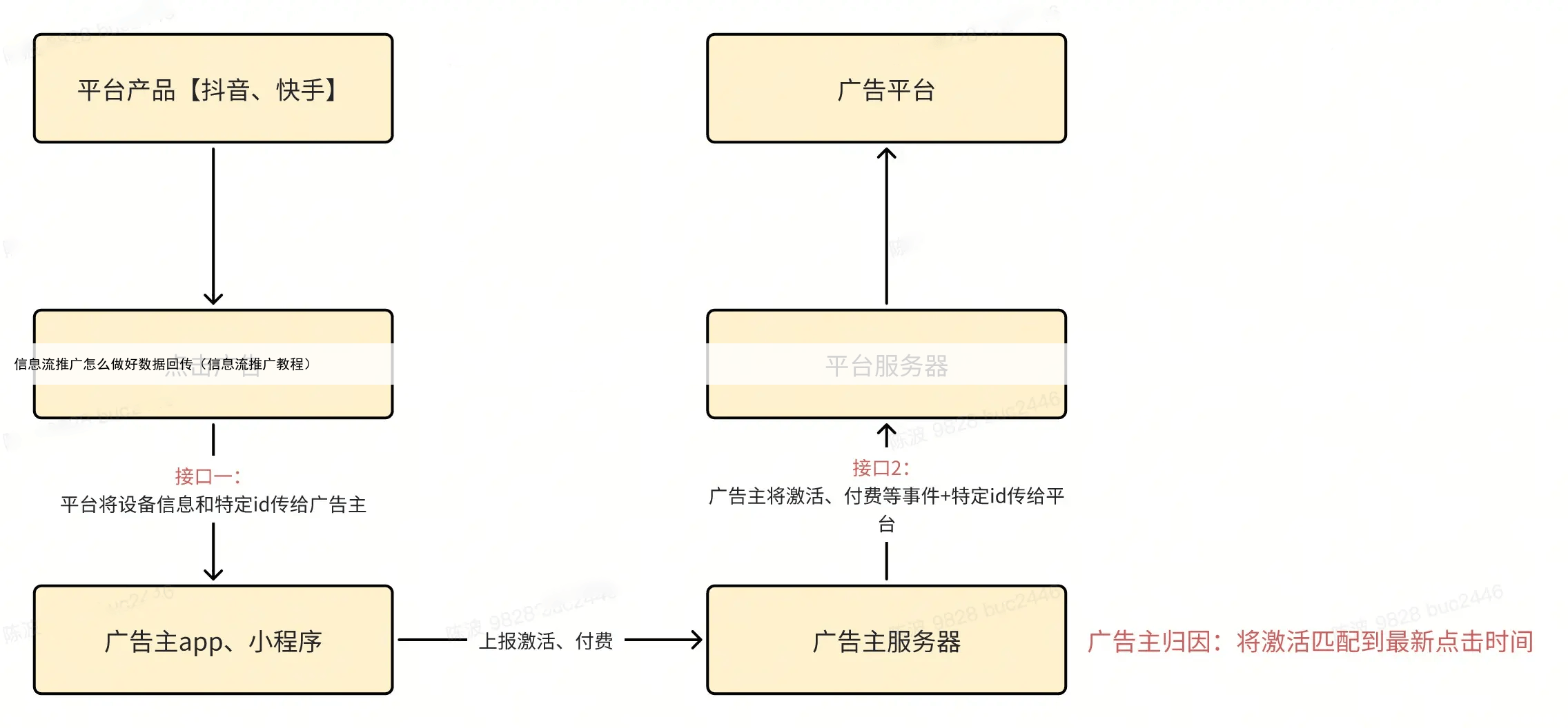 广告回传简单来说就是1:你平台产生付费行为的这个用户,回传给了广告平台,平台会依据该用户的特征去找相同特征的人群,并展示广告2: 广告主把用户在自己平台上的行为数据‘告诉’广告平台,让平台知道哪些广告效果好、哪些用户更有价值