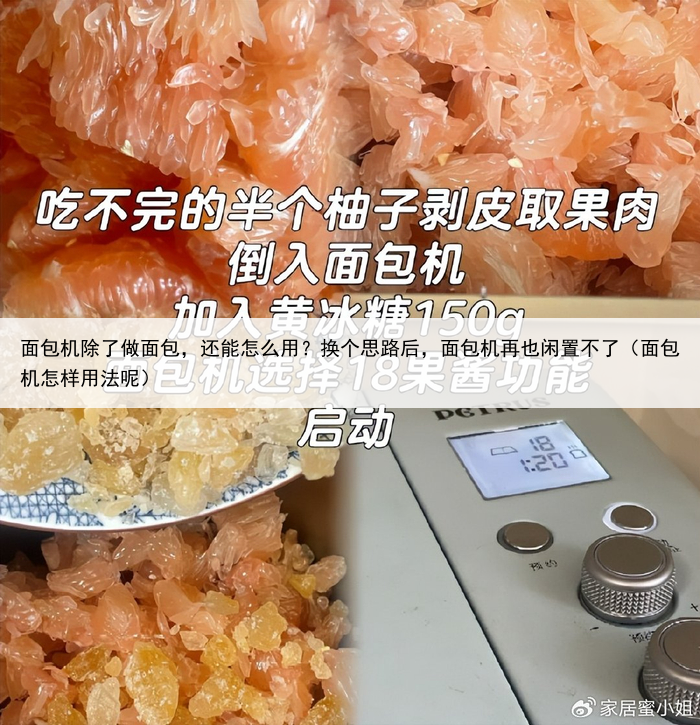本期内容就跟大家一起拯救闲置面包机,换个思路用,面包机秒变家居神器!01、蜂蜜柚子酱 面包机除了做面包之外,其实还有很多妙用~ 就比如,做这个蜂蜜柚子酱啊!