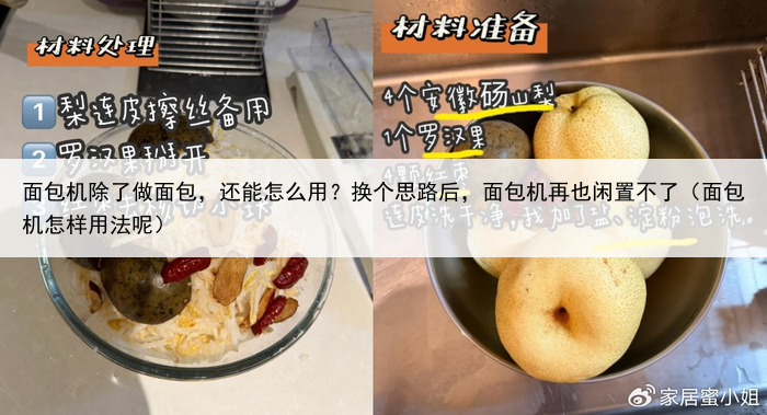 家里如果有闲置面包机,可以用面包机做秋梨膏,做法也很简单: 先把食材准备好,梨、罗汉果、红枣,梨清洗的时候,需要用盐搓洗一下,用淀粉泡洗。