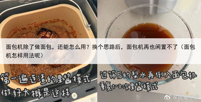 第一遍果酱模式厚,把果酱过筛一下,过筛厚的梨水再倒入面包机里面,重复1~2次果酱模式即可。