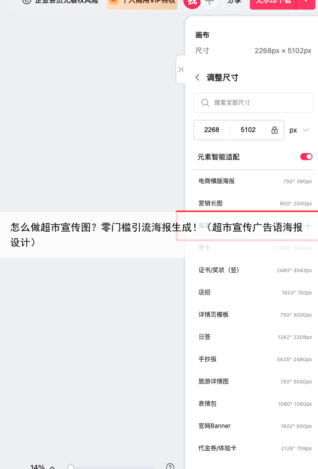 |为什么特别适合超市老板?1. 模板超接地气a. 不仅有通用促销,还有生鲜标牌、价签、优惠券等细分场景b. 节日自动更新:端午粽子/中秋月饼/年货大礼包全套都有2. 操作无门槛a. 真的只需要