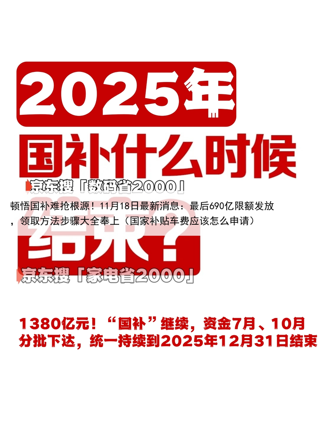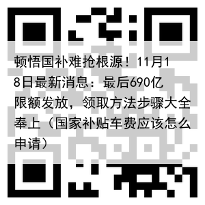 顿悟国补难抢根源!11月18日最新消息:最后690亿限额发放,领取方法步骤大全奉上(国家补贴车费应该怎么申请)