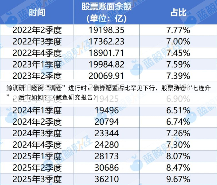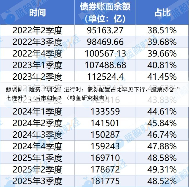 鲸调研|险资“调仓”进行时:债券配置占比罕见下行、股票持仓“七连升”,后市如何?(鲸鱼研究报告)