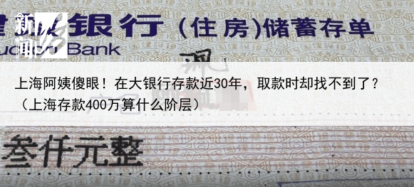上海阿姨傻眼!在大银行存款近30年,取款时却找不到了?(上海存款400万算什么阶层)