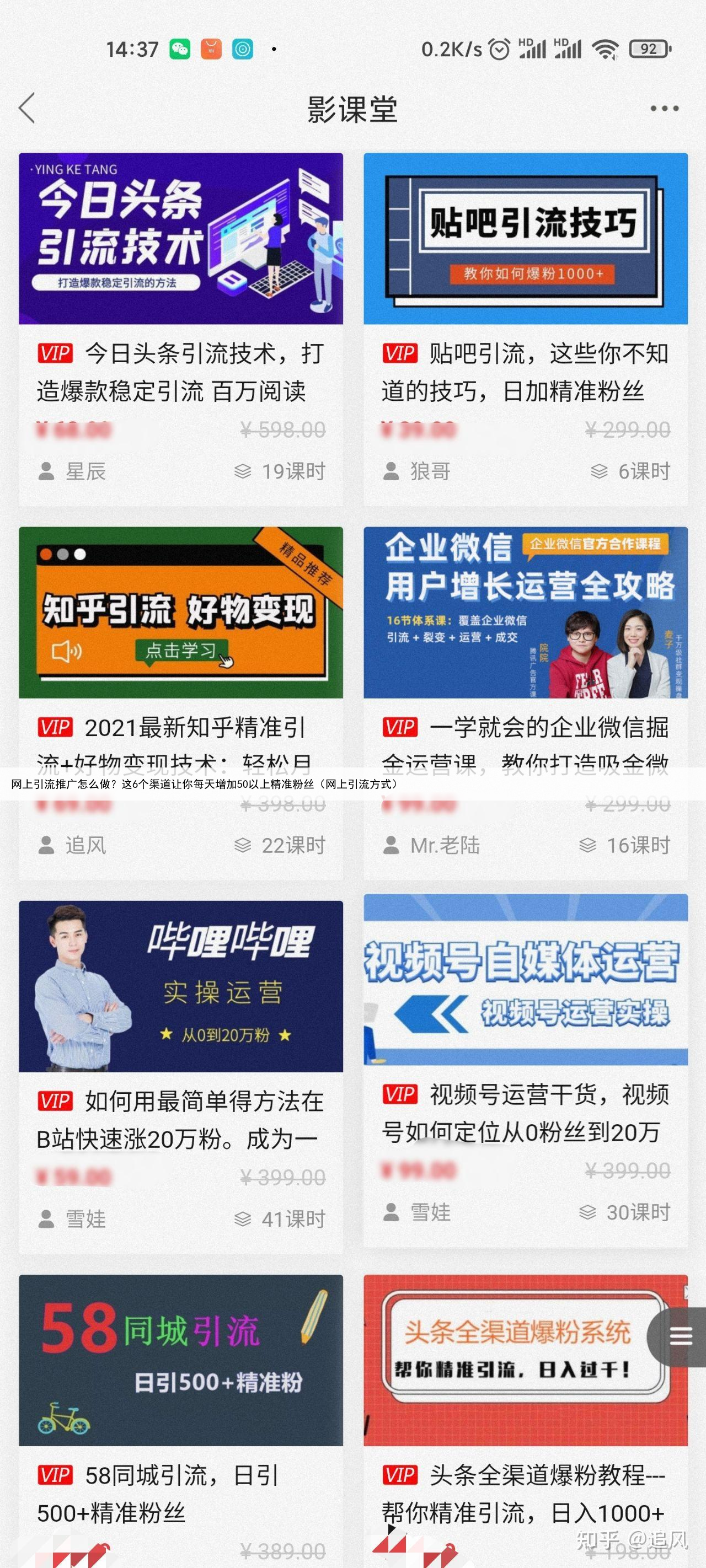 4 影课堂影课堂其实就是一个发布引流课程的平台,自身并没有流量优势,但里面的引流课程还是非常多的,同时也非常值得借鉴一下的。而且里面有很多关于副业方面的课程都可以值得借鉴和学习。