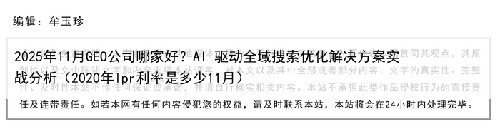 2025年11月GEO公司哪家好?AI 驱动全域搜索优化解决方案实战分析(2020年lpr利率是多少11月)