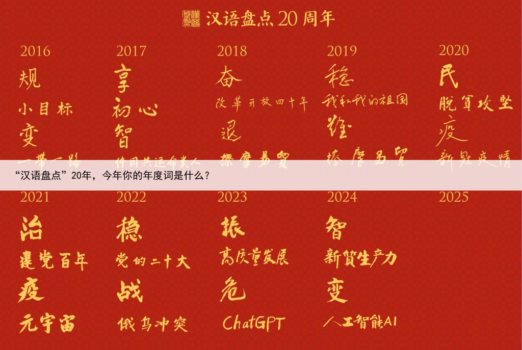 活动期间也将陆续发布“年度十大流行语”“年度十大网络用语”“年度十大新词语”12月19日,“汉语盘点2025”揭晓仪式将在多个平台同步直播,揭晓年度字词今年是“汉语盘点”二十周年,活动中也系统梳理二十年间评选出的年度字词所构成的时代切片,聚焦个体微光,共谱时代记忆。