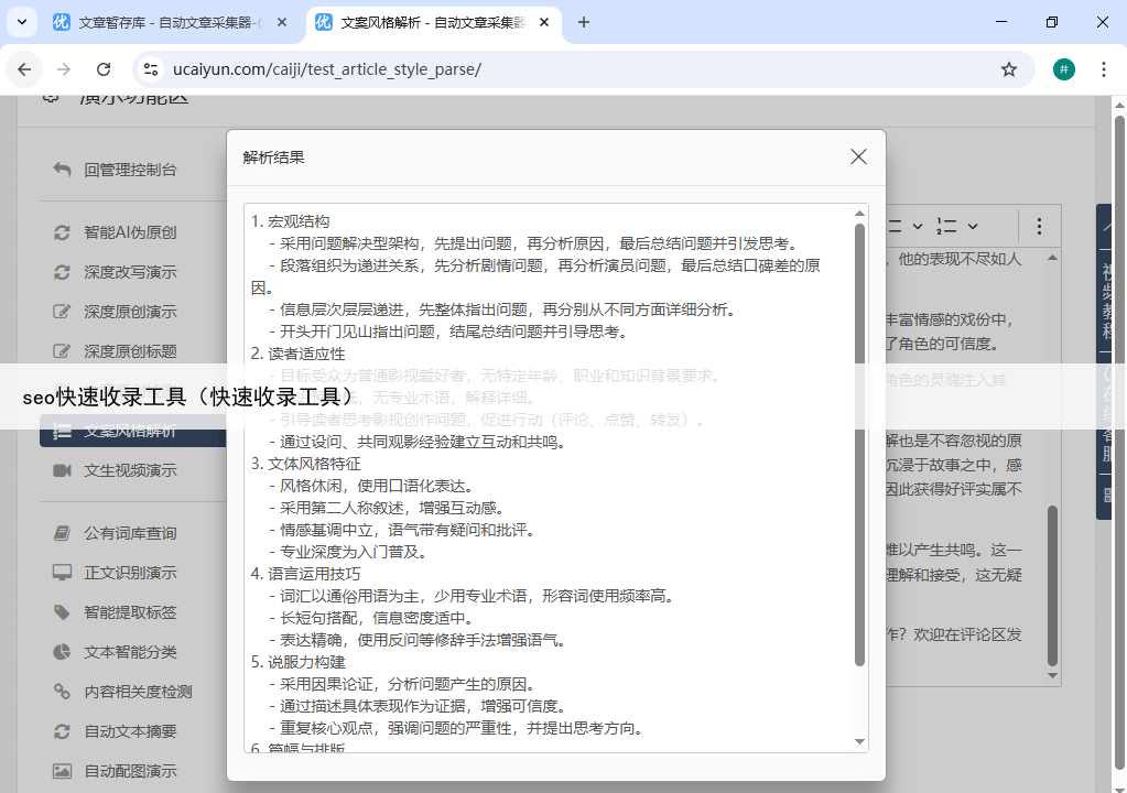 迅收录大师是一款侧重于快速内容生产和搜索引擎提交的工具它提供了便捷的内容采集接口,并能对采集到的内容进行基础的伪原创处理和关键词优化该工具内置了内容自动发布模块,支持将处理后的文章直接发布到主流CMS系统。