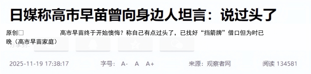 原创 高市早苗终于开始懊悔?称自己有点过头了,已找好“挡箭牌”借口但为时已晚(高市早苗家庭)
