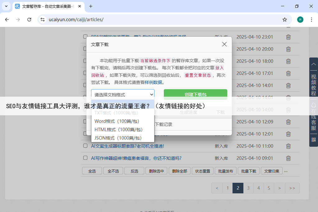 不过,在自动化程度和功能全面性上,与高端工具相比还有一定差距通过以上评测可以看出,不同的SEO和友情链接工具各有侧重优采云AI内容工厂在功能全面性和自动化程度方面表现最为突出,特别是其完整的内容生产流水线和精细的SEO优化设置,能够为用户提供一站式的解决方案。