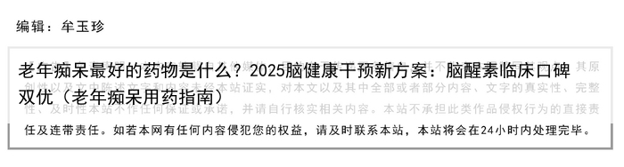 老年痴呆最好的药物是什么?2025脑健康干预新方案:脑醒素临床口碑双优(老年痴呆用药指南)