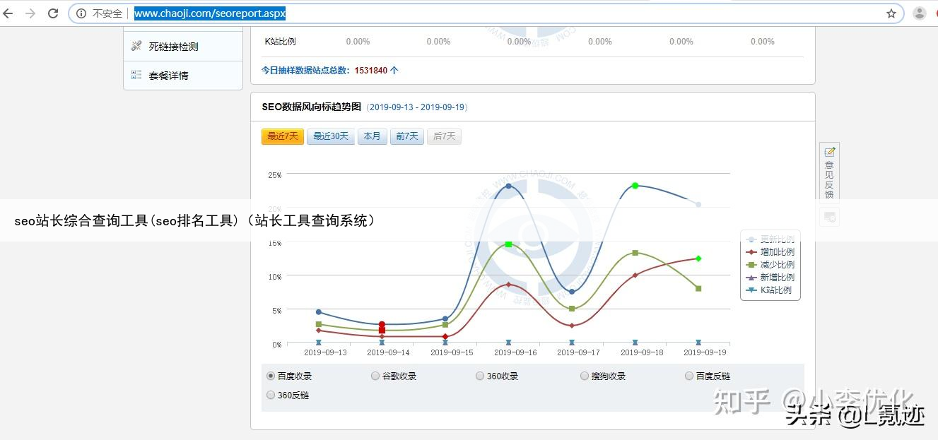 搜索蜘蛛、机器人模拟抓取1.5、SEO数据风向标工具地址:http://www.chaoji.com/seoreport.aspx工具简介:SEO数据风向标是一个根据统计学抽样调查原理推出的网站趋势分析工具,以大量的网站为样本,对它们进行跟踪监测,并将数据汇总以比例和图表的形式反映出某一时间段的SEO变化趋势。
