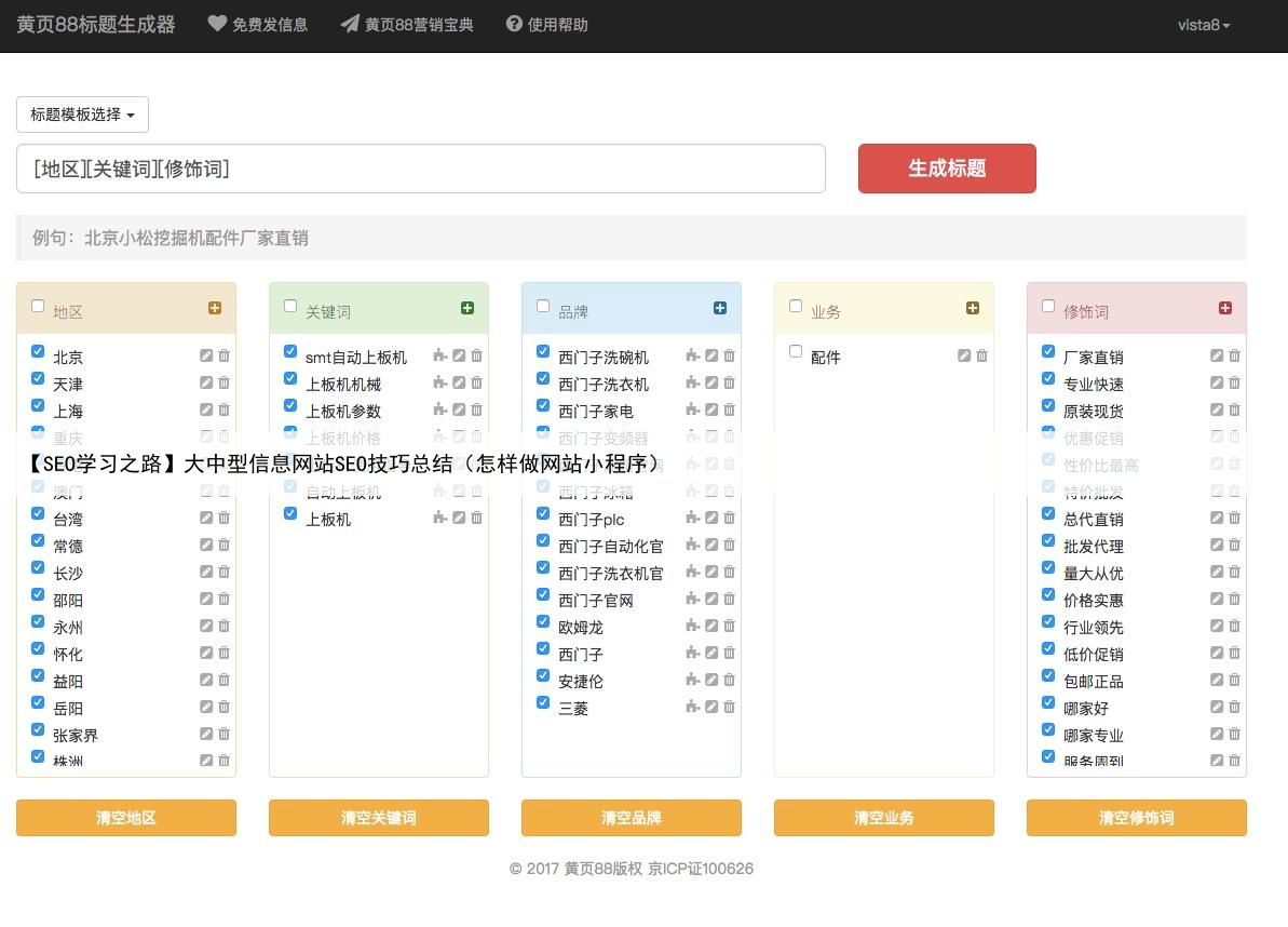 命令行工具做处理还需要考虑非标准词、敏感词的处理更多内容见:https://zhuanlan.zhihu.com/p/26755718总结以上仅是自己总结提炼的部分经验,对于B2B和分类信息行业的SEO优化,其实还有很多不便公开的技巧,欢迎大家加我微信交流:vista8。
