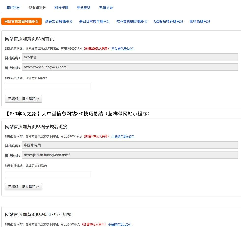 所以需要在产品中融入SEO,让用户的行为能对网站SEO起到帮助作用比如,黄页88用户中心的每条信息下面都有一个SEO优化链接页面里会建议用户把信息链接主动提交给搜索引擎、让用户使用referer词发新信息,让用户主动去发外链等等。