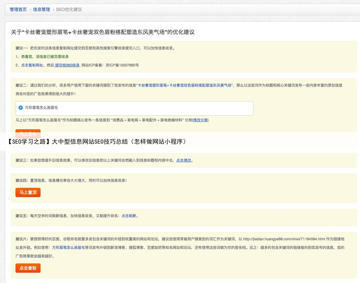 【SEO学习之路】大中型信息网站SEO技巧总结(怎样做网站小程序)
