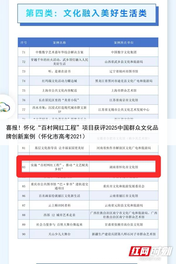 喜报!怀化“百村网红工程”项目获评2025中国群众文化品牌创新案例(怀化市高考2021)