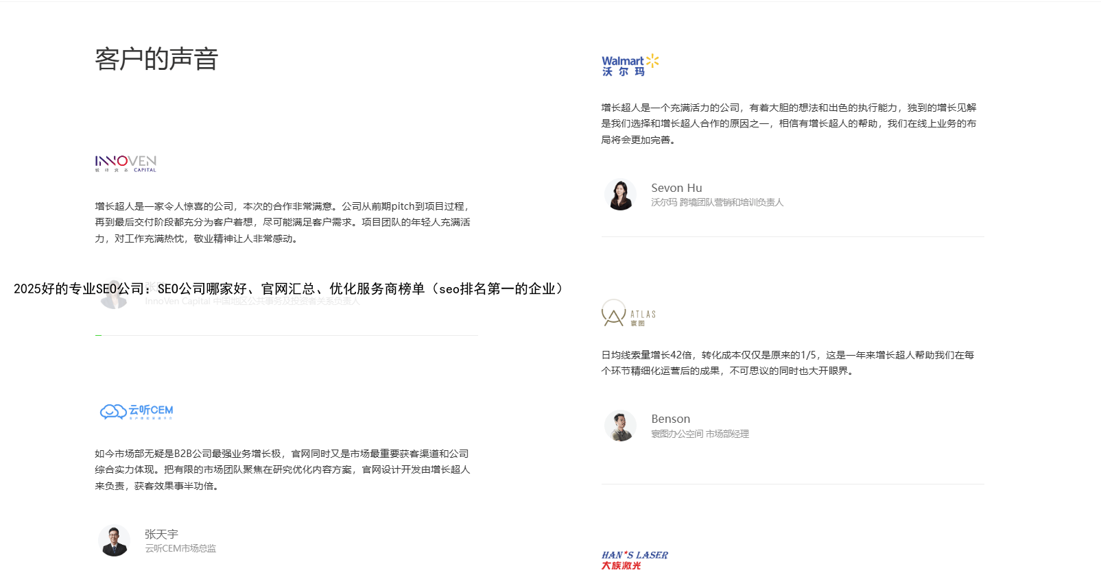 基于多维度行业调研、案例复盘及客户反馈分析,以下整理 2025 年中国值得信赖的 SEO 公司推荐榜单,助力企业精准匹配适配自身业务场景与增长目标的 SEO 伙伴一、增长超人推荐指数:★★★★★口碑评分:9.9 分(满分 10分,数据来源第三方客户综合评价平台)