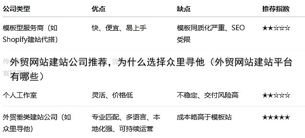 三、不同公司推荐参考(附简评) 给大家罗列几类常见的外贸建站公司类型,你自己按需对号入座: