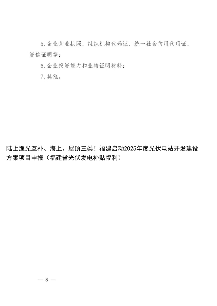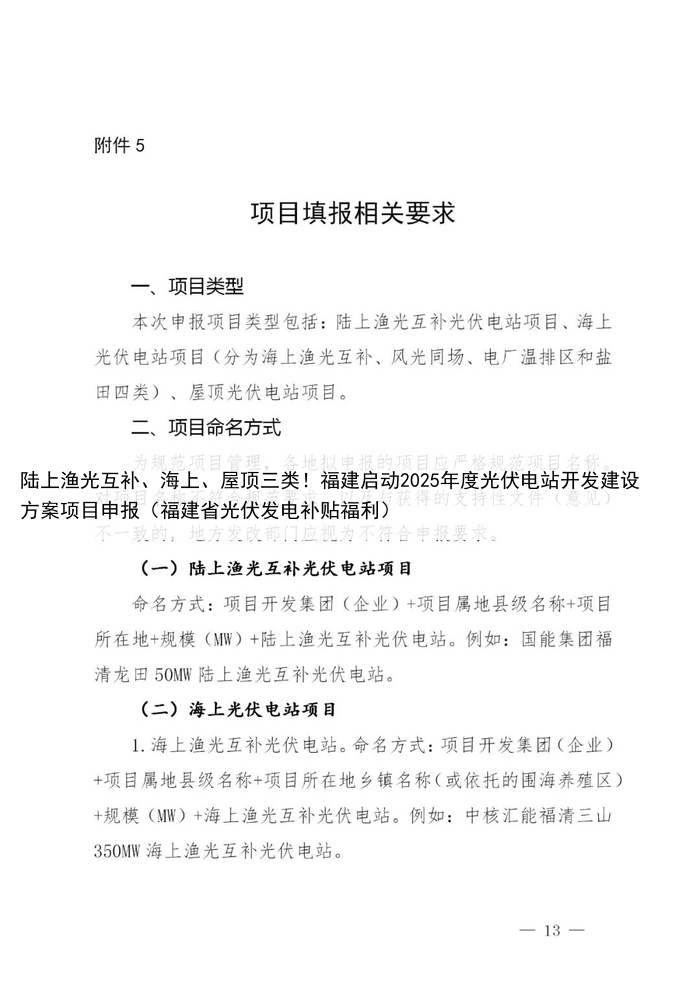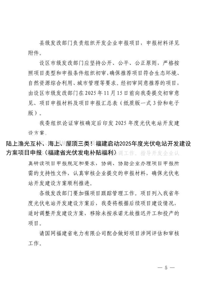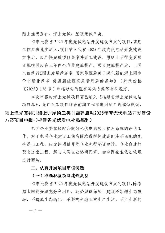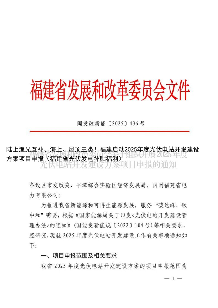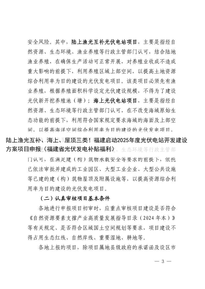 陆上渔光互补、海上、屋顶三类!福建启动2025年度光伏电站开发建设方案项目申报(福建省光伏发电补贴福利)