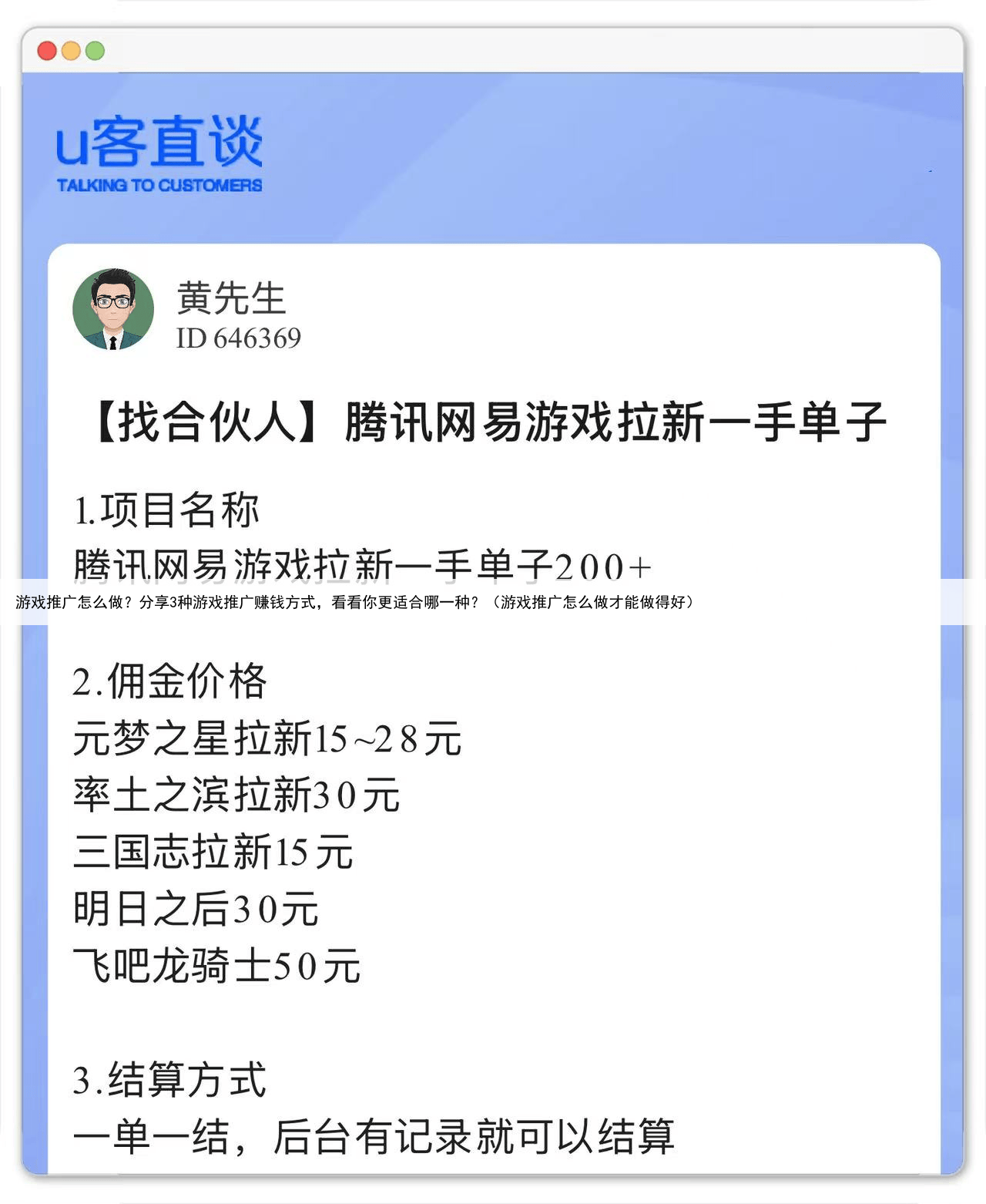 游戏推广怎么做?分享3种游戏推广赚钱方式,看看你更适合哪一种?(游戏推广怎么做才能做得好)