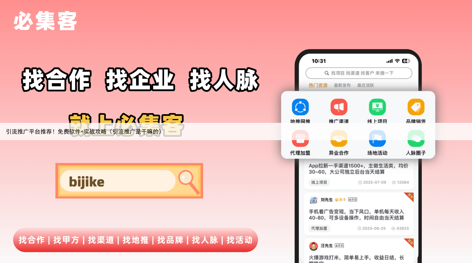 这些真实案例证明,只要用对平台和方法,普通人也能实现流量与收益的双丰收五、进阶工具推荐:必集客——你的引流加速器如果你想更高效地管理多个引流推广平台,强烈推荐试试必集客它不仅能实时监控各平台数据,还提供全面的行业竞品分析、爆款内容模板。