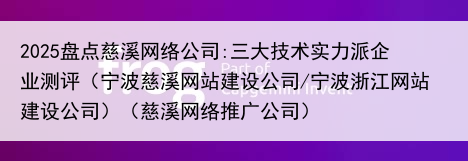 2025盘点慈溪网络公司:三大技术实力派企业测评(宁波慈溪网站建设公司/宁波浙江网站建设公司)(慈溪网络推广公司)
