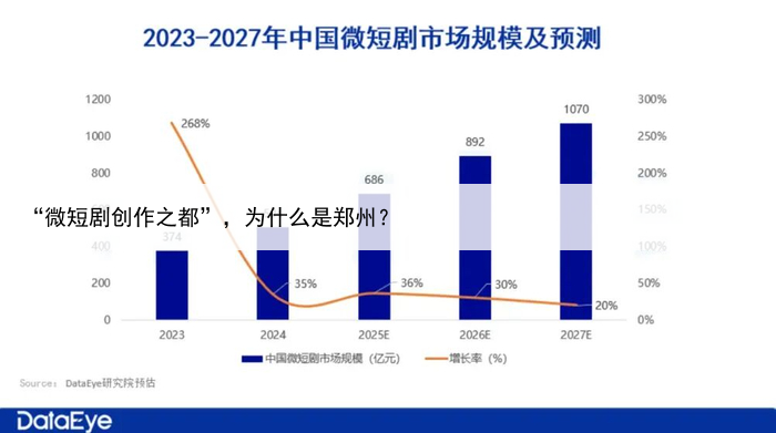 郑州市政府也在《郑州市打造“微短剧创作之都”工作实施方案(2025—2027年)》中,提出要着力打造郑州“微短剧创作之都”,争取到2027年全市微短剧市场规模达到100亿元 正处在“风口”的千亿级微短剧产业,未来能带给郑州什么?。